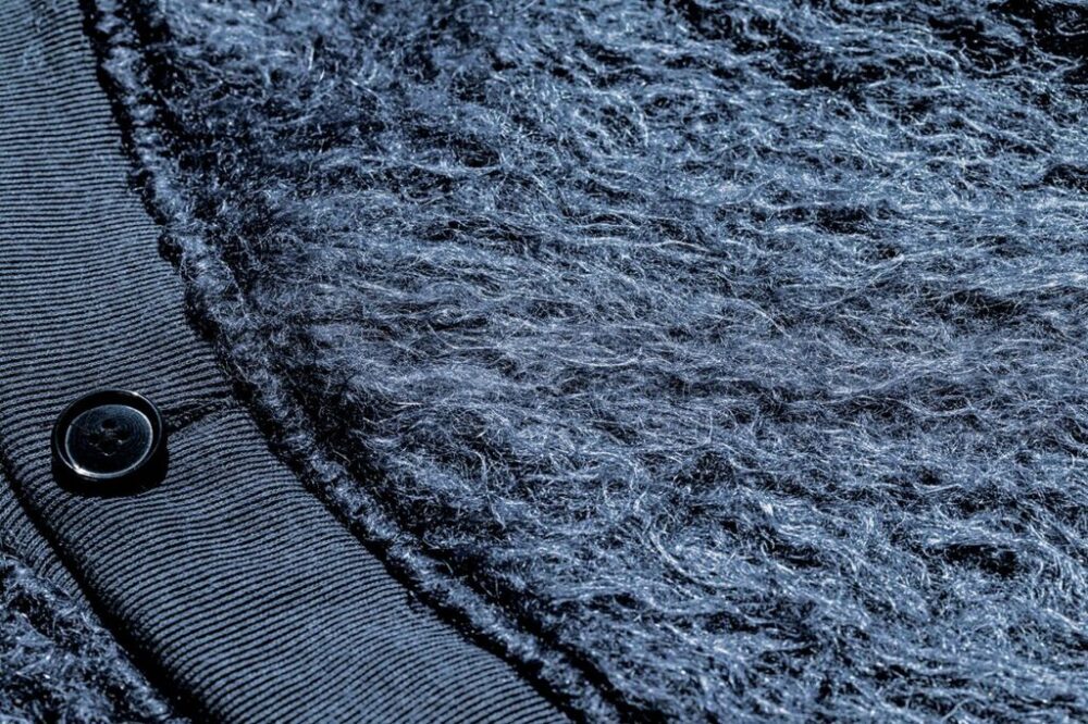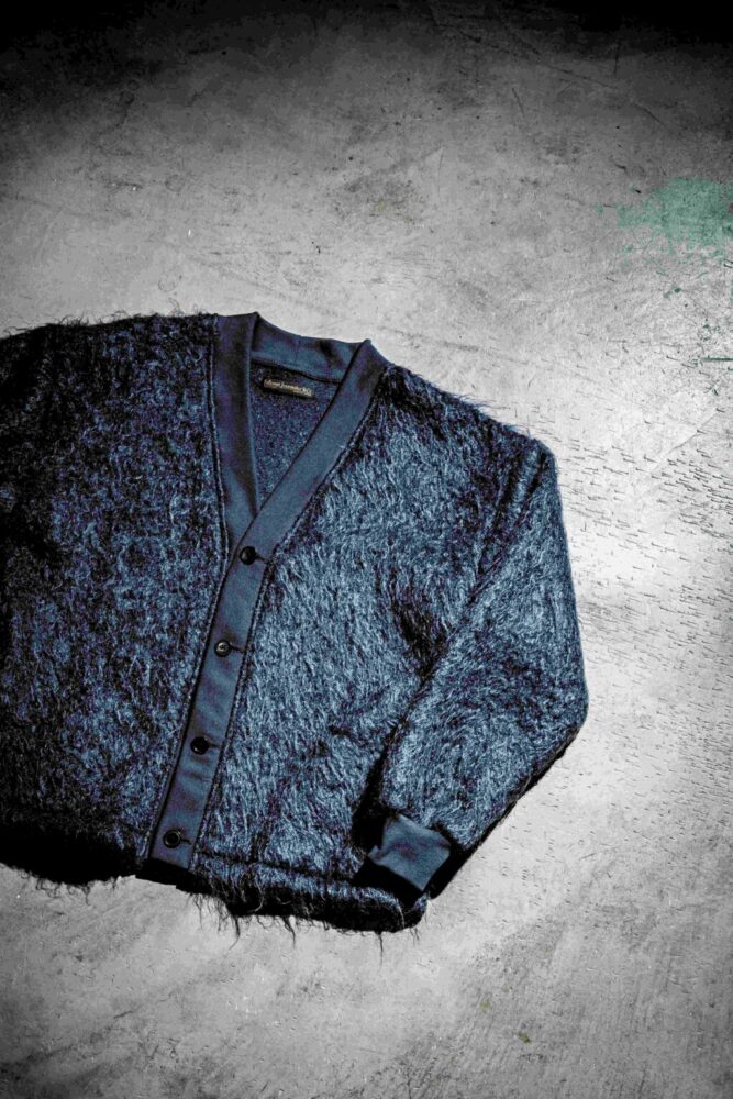 イタリアの高級モヘアを使用し、リブを部分使いしたカーディガン。毛足も長く光沢もあり上品な印象だ。天然繊維のバージンウール・モヘアは保温性も高く肌触りも良い為この冬場に重宝する。ユニセックスでフリーサイズの為着回しの良い逸品。21,780円