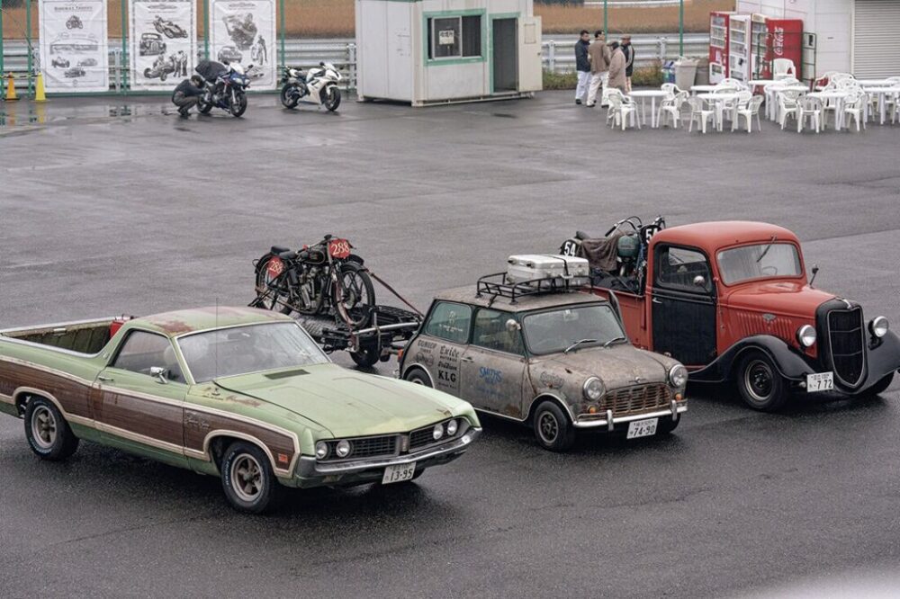 レースバイクを運搬するトランスポーターも会場内に駐車できるのはヴィンテージカーに限定される。イベントの世界観を守る粋な演出だ。