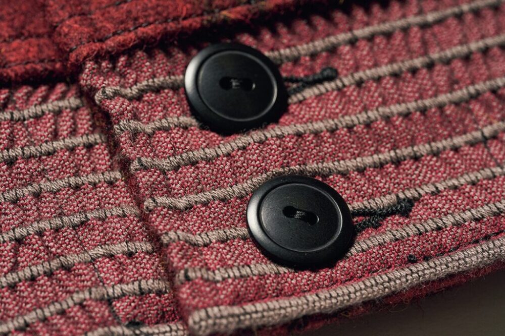 大きめのナットボタンは手付けのもの。この特徴的な裾リブもヴィンテージを忠実に再現した。