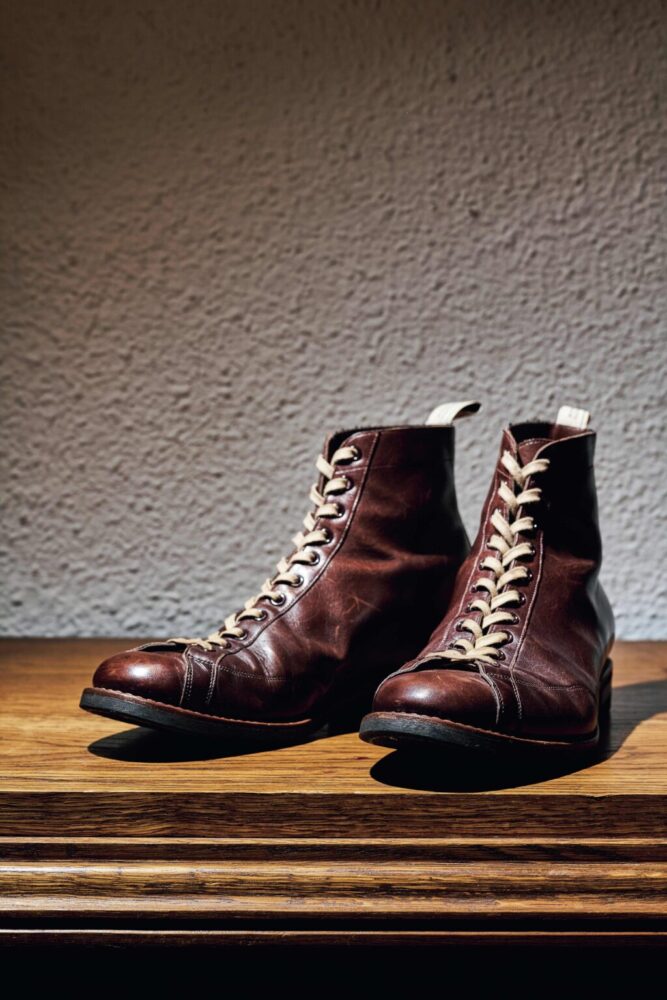 BROTHER BRIDGEの靴は、大人の普段靴を目指すだけあって、どこか上品でドレスシューズのような気配すら感じさせる。HENRYも、かつてボクシングで使われていたようなスポーツ用のアスレチックブーツをベースにしながらも、シャープな美しさを漂わせている。