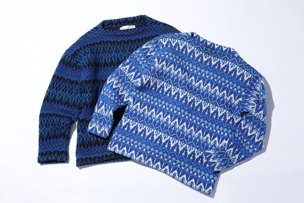 洋服を買うときの基準はいつだって色。これはショップに3着似たような古着のストックがあるのを見つけ、そのうちの2着を同時に購入した。それぞれのカラーリングが抜群。今、この手のボートネックのセーターが私の気持ちのなかではかなり旬なアイテムだったことも手に取った理由。正確な年代は不明だけど、それよりも色や柄、それにカタチに高評価を付けたい。