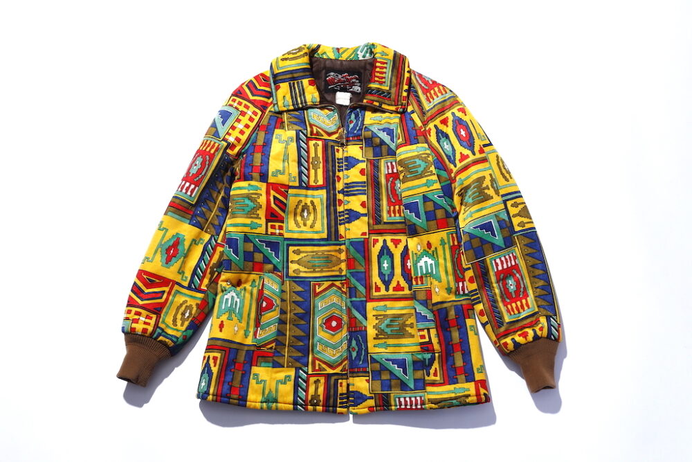 ミネソタ州はセントポールのブランド(現在は実在していない と思われる)のタグが付くスキージャケット。古着店からは1970年代製だと聞いているが、その時代らしい配色をネイティブパターンで表現する心意気にやられて手に入れた。2段編みのリブや手の込んだ刺しゅうタグなど、昔のアメリカ製らしさを随所に感じる。このデザインならゲレンデで目立つことは間違いない。スポーツウエアとは思えないデザインがおもしろい。