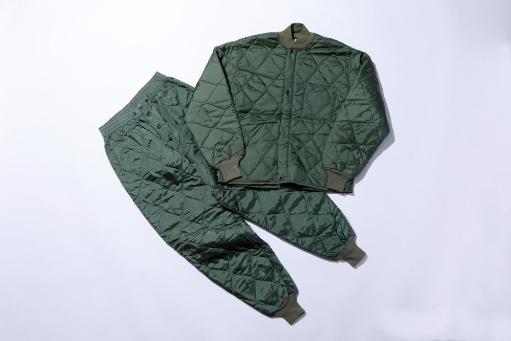 上下セットアップで古着店で見つけたデッドストックのライナー。米軍のCWU-9/Pのモノである。サイズがぴったりだったことと、もともとイージーに着ることができる暖かいアイテムが好きなこともあって、もちろん 迷わず上下セットで購入。さすがに上下セットで合わせて着ることはないが、昨今の暖冬ではけっこう活躍してくれている。ライナーといっても単体でも着ることができるデザインは当時のミリタリーウエアならではの機能である。