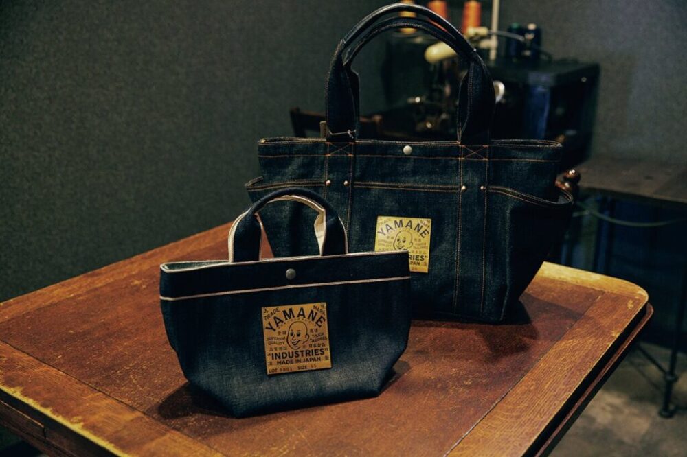 またオリジナルデニム生地を使用した自社工房のみで生産されるデニム製のバッグも数型用意。徐々にファッション小物も企画しており、それらが店頭に並ぶ日が待ち遠しいものだ。
