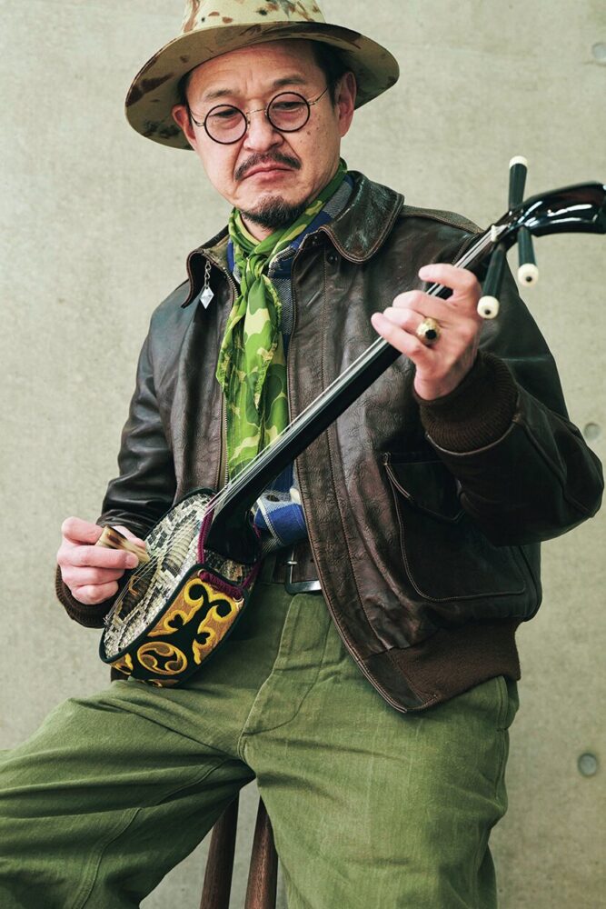 5年ほど前から始めた三線は亀屋さんの趣味のひとつ。黒檀のネックにボディには1枚張りの蛇革が張られたこだわりの1本。