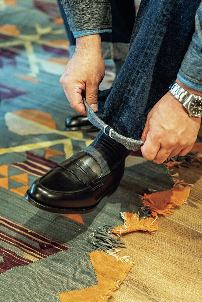 ジーンズに合わせるために、最近、購入したブラックのローファーは、CROCKETT&JONESのもの。