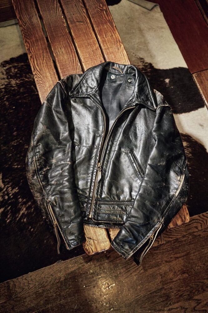 自身初となるシングルライダースは、1960年代製のCAL LEATHERのもの。革の風合い、デザイン、コンディションともに良好な個体。