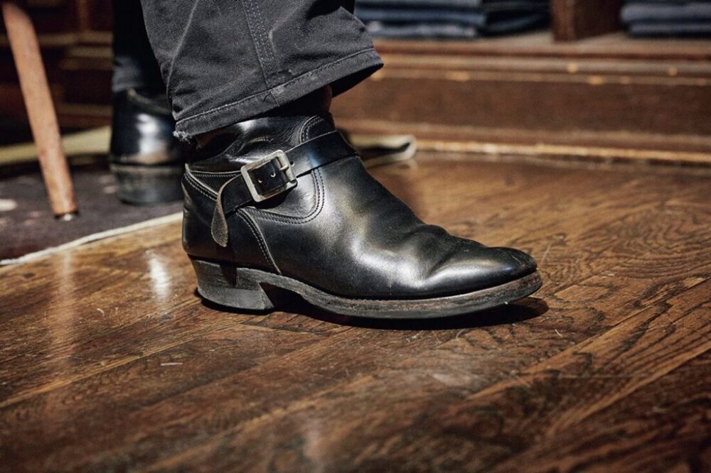 愛用するエンジニアブーツはBILTBUCKのもので型番違いで複数所有する。バイクのライディングのせいかソール交換の周期は他人よりも早いのだという。