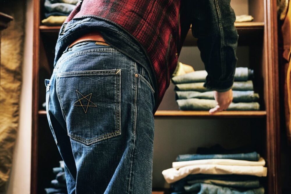 WAREHOUSEがブランド設立20周年記念時に製作したバックポケットにスターステッチが施されたジーンズ。約10年前のモデルだが実際に穿き込んでエンジングさせたのは2〜3年ほど。