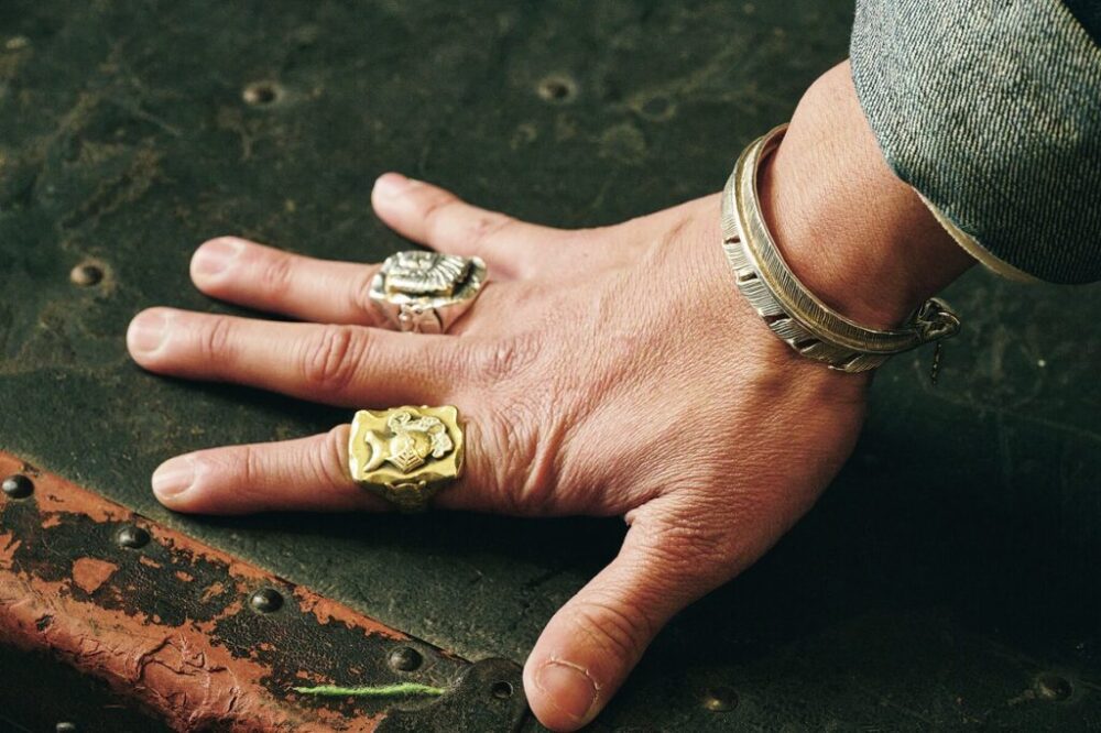 毎シーズンリリースされるメキシカンリング。シルバーのインディアンヘッドと真鍮のナイトは最近のお気に入り。バングルはFIRST ARROW’s。