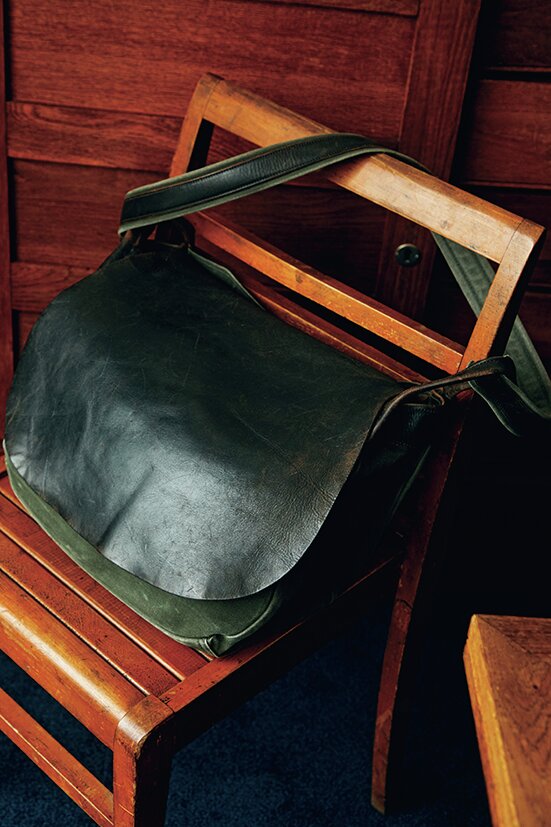 レザーブランドMOTO の創業者で、レザーアーティストとして活躍する本池秀夫氏が1点ずつ製作したショルダーバッグ。今春コラボにてリリース。