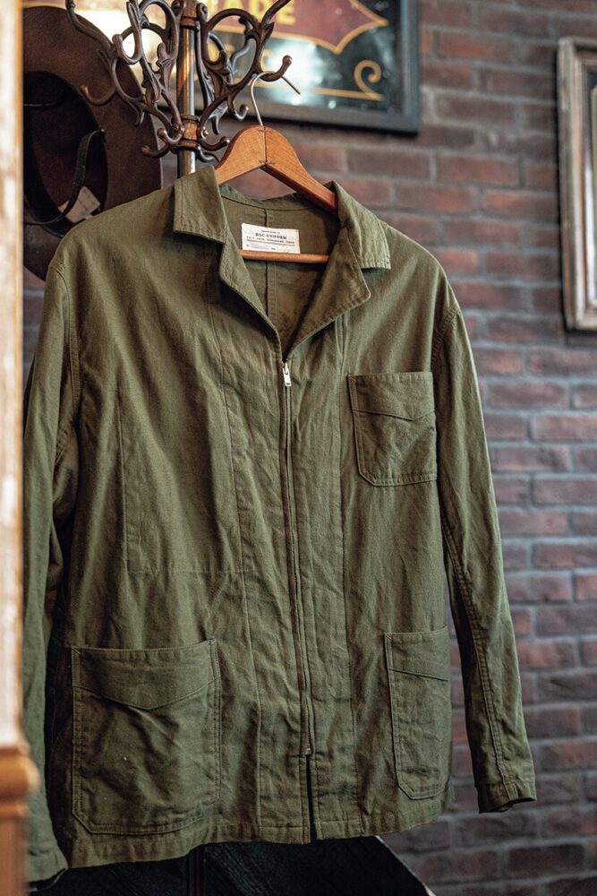 薄手のモールスキンを採用するフレンチワークスタイルのジップジャケット。着込んで柔らかい風合いが現れたモールスキンの表情が味わい深い。
