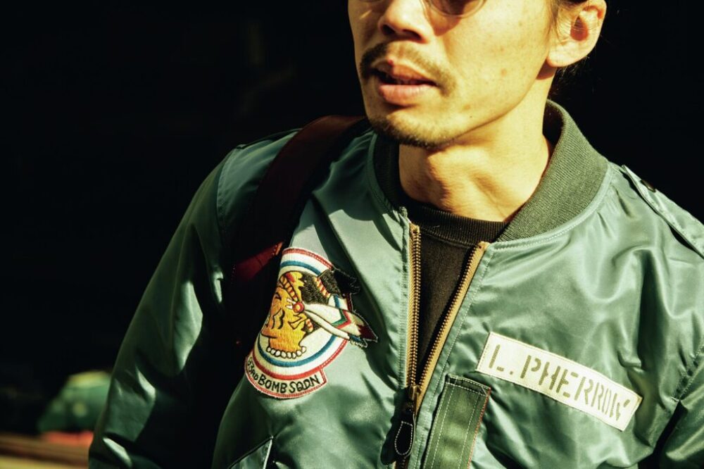 今シーズン久しぶりのリリースとなったL-2Bを着用。フロント両胸にパッチが装備されるカスタムモデル。プレーンモデルもラインナップする。