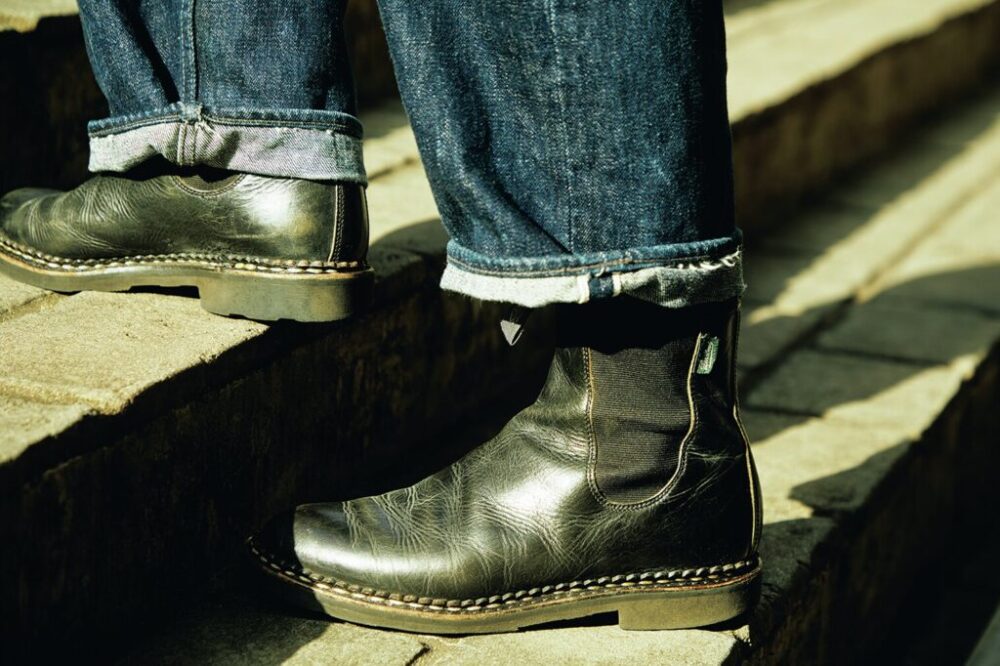 突然の雨天時にも安心なParaboot。チェルシーブーツ以外にも複数足所有するが、ここ最近はシューレースもなく脱ぎ履きがしやすいこのブーツの出番が多くなっている。