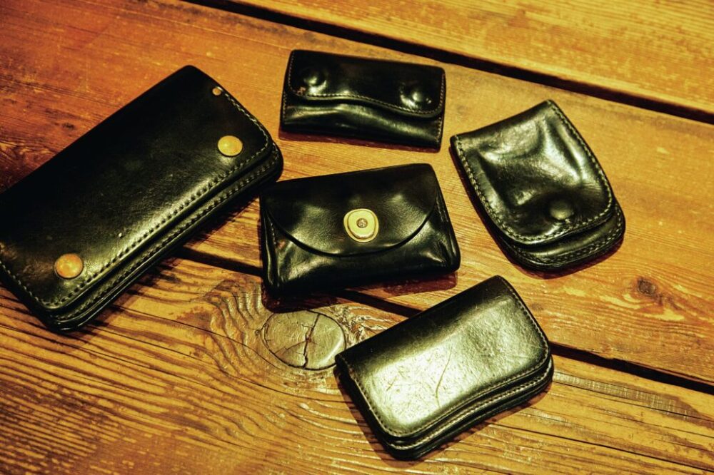黒羽、vasco、WILDSWANSなど、財布やキーケースをはじめ、革小物はブラックをセレクトすることが多い。どれもリアルに使い込んだ経年変化が美しい。