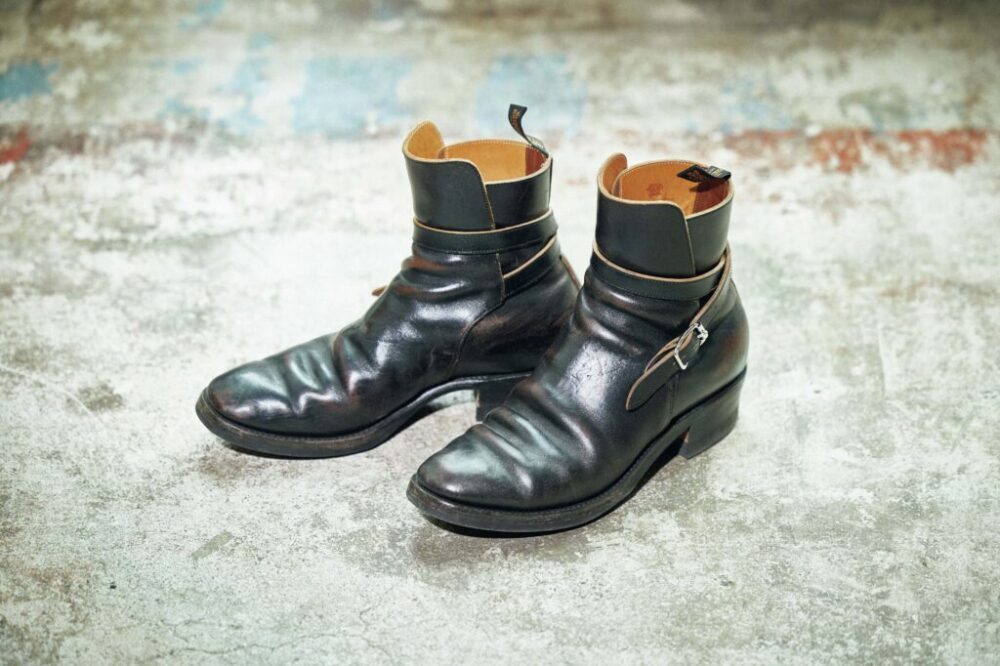 19世紀に英国の乗馬用ブーツとして生まれたジョドファーブーツ。徳永氏が手掛けたこのブーツのラストには、マンソンラストに独自の修正を加えたオリジナルラストが採用され、ダイレクトウエルト製法で仕上げている。