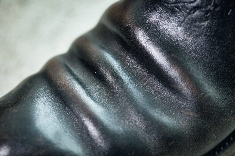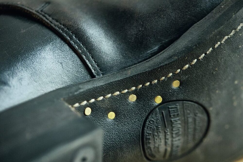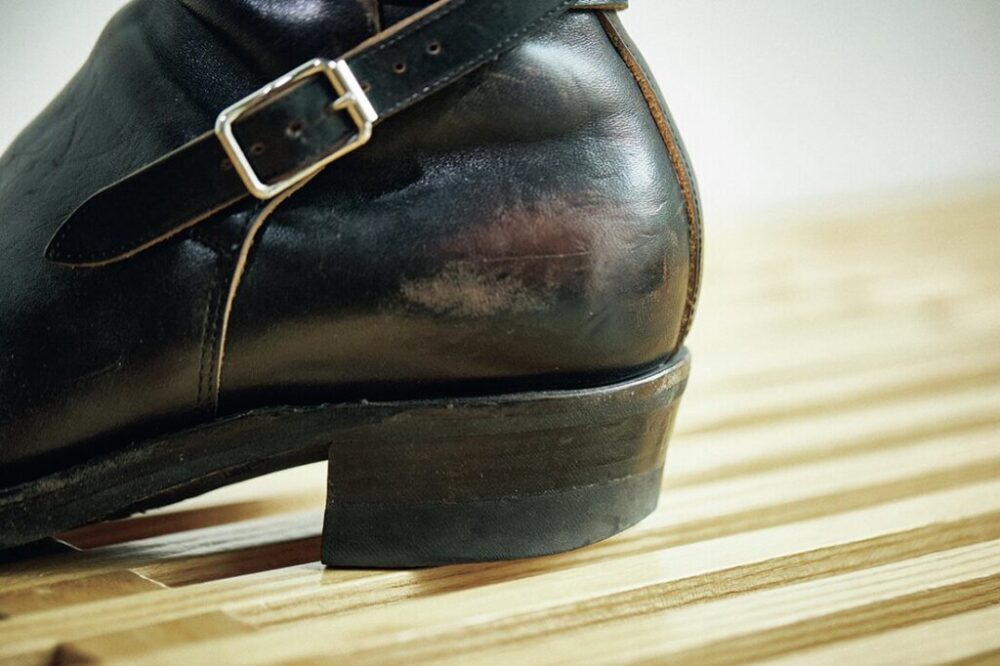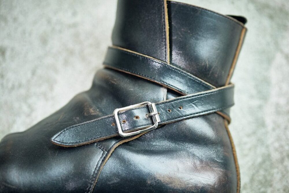 サンプルとして製作したジョドファーブーツを約1年、ヘビーに履き続けた。マテリアルは茶芯のホースバットを採用し、履き続けることで中の茶色が現れ、美しい履き皺とともにエイジングを楽しむことができる。気品のある佇まいと武骨さを兼ね備えたブーツだ。