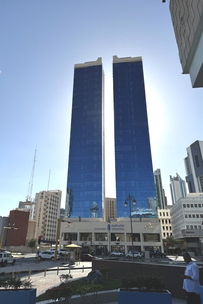 これは東京の青山にあるツインタワー……ではなく、パールタワーというクウェート中心街にある建物。この1階にて「クラッチカフェ in Kuwait」のポップアップイベントを開催しました。
