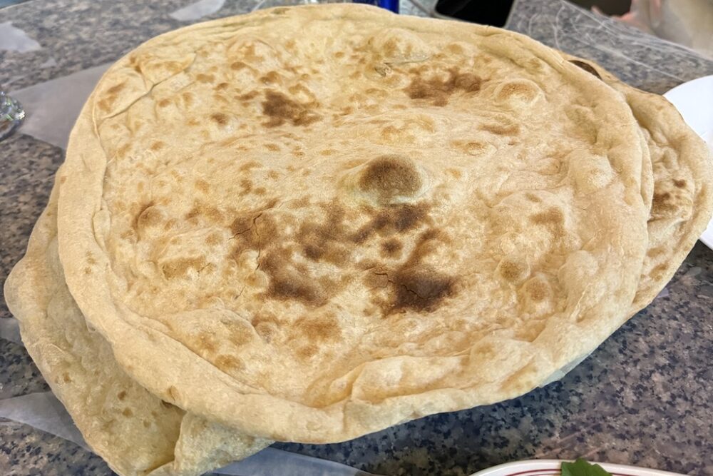 レストランのメニューには イラニブレッド(イランのパン)と記載してあった、中東によくあるパン(インド料理のナンとはちょっと違い、少し薄く、とても大きいパン)。これだけでもお腹いっぱいになる大きさ、美味しいパンでした。