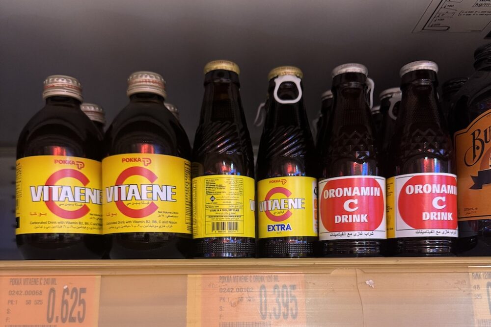 クウェートにもあることに驚きのオロナミンC(写真右)! 大塚製薬さんも、その隣にあるポッカさんもかなり頑張ってますね……。日本のドリンクに出会えてちょっとほっこりしました。普段ロンドンにいるせいもありますが。