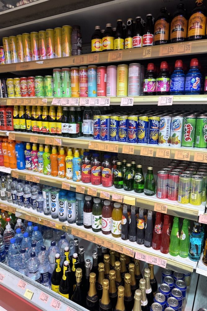 スーパーマーケットのジュース売り場はこんな感じ。馴染みのあるパッケージもちらほらと。ただ、味を確かめるまではトライせず、今回は水を飲んでいました。弱気ですいません。