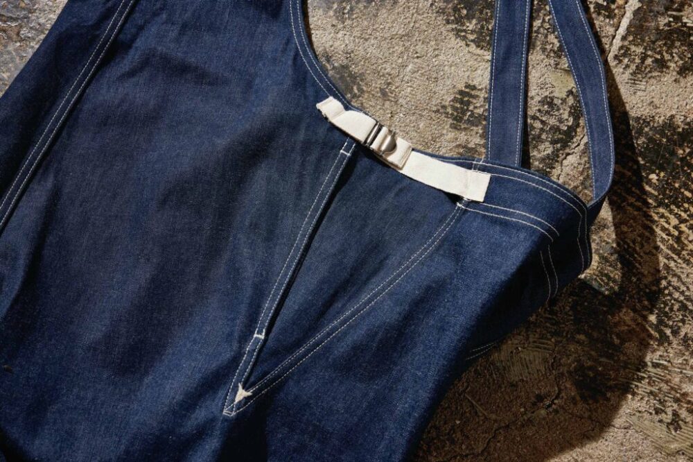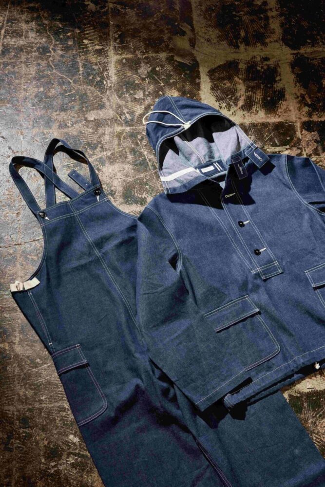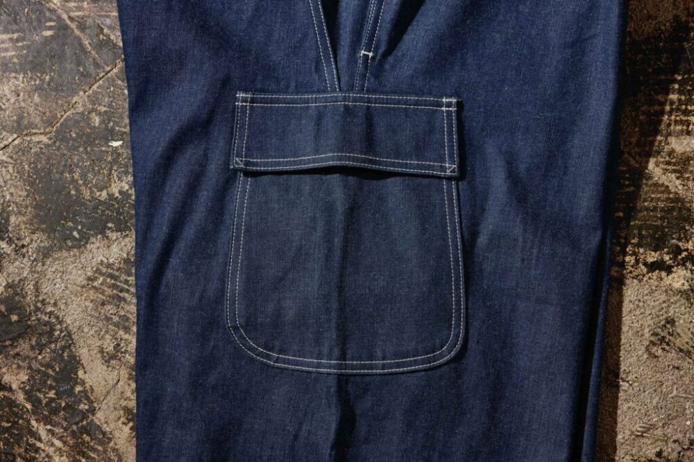 1940年代、第二次世界大戦時のU.S.NAVYのガンナーズパンツをベースにデザインしたオリジナルオーバーオール。ゆったりとしたシルエットに大型のフラップポケットなど、クラシカルながらも現代的に使い勝手の良いディテールを備えている。デニムパーカは、U.S.NAVYの艦隊の中でも砲撃隊(ガンナーズ)任務の兵士が着用していたとされる。53,900円、61,600円