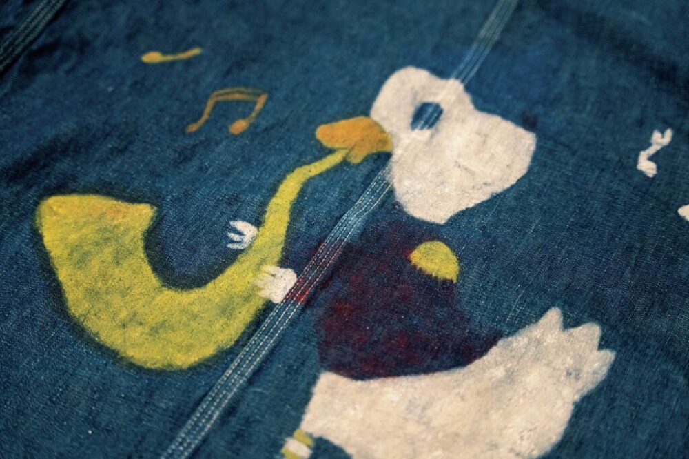 ベースとなっているカバーオールは、ペイントから推測するに1962年以前に作られたもの。フロントは比較的落ち着いたペイントカスタムだが、背面には音を奏でるアヒルのグラフィックが堂々と描かれるアート性の高さ、そして何よりも唯一無二なデザインであることが辻本氏にとって「とっておき」となっているのだ。