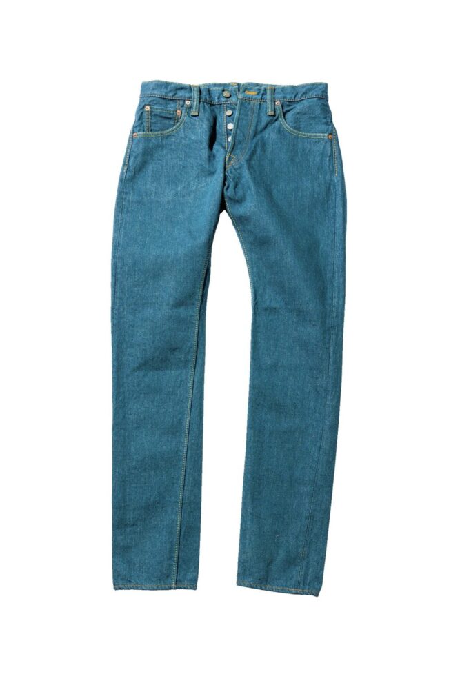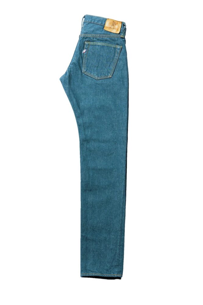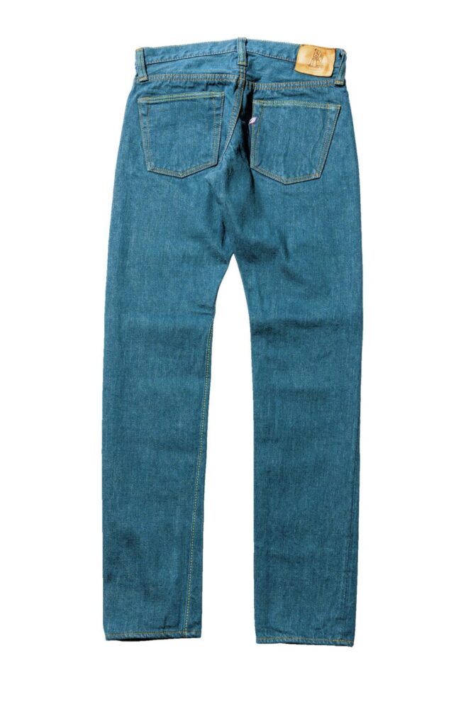 通常のインディゴデニムと雰囲気の異なる、“くすんだ青色”を持つデニムが登場した。「スモーキーブルーデニム」と名付けられたこの新作は、インディゴと硫化染料を混ぜた染料でロープ染色をし、淡くくすんだブルーに染め上げて作られている。明るいトーンでありながら、落ち着いた雰囲気を醸し出しており、どことなく日本的な色彩を感じさせる独特な色合いに仕上がっている。穿き込めば、濃色のデニムほどではないが、ヒゲやハチノスなどのアタリも出現し、色落ちも十分楽しめる。写真のスリムテーパードの他に、レギュラーストレート[SMBL-003]や、リラックステーパード[SMBL-019]をラインナップする。価格はすべて33,000円(38インチ以上は36,300円)