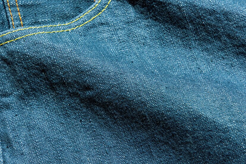 pure blue japanでは定番のXXシリーズと同様の、14オンスの程よいザラ感を持つ生地を採用。穿き込むほどにヒゲなどのアタリが楽しめる。