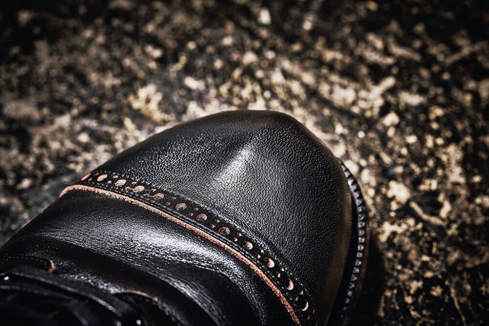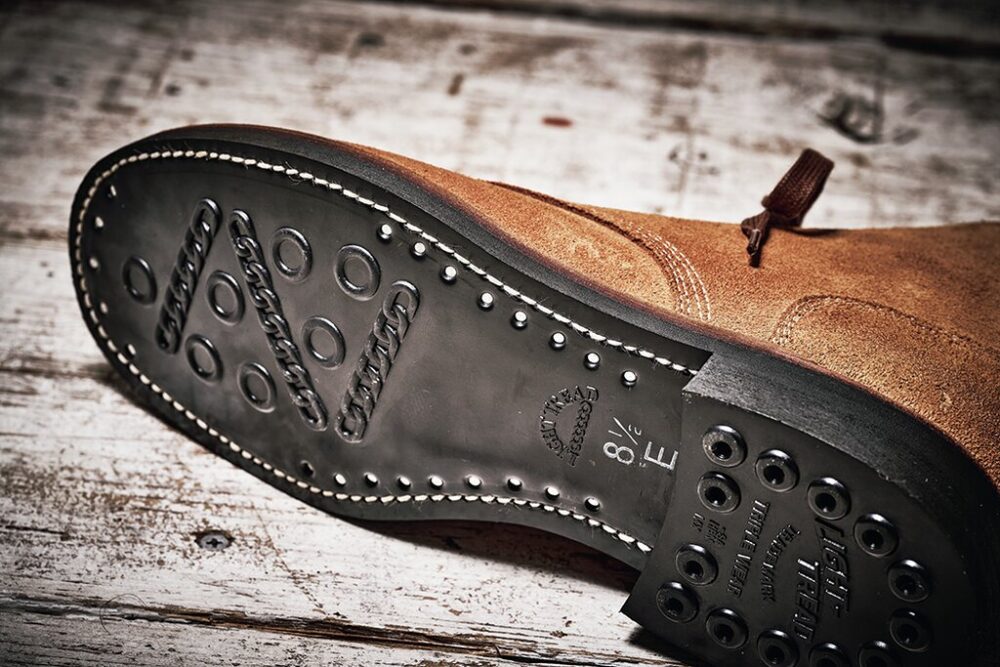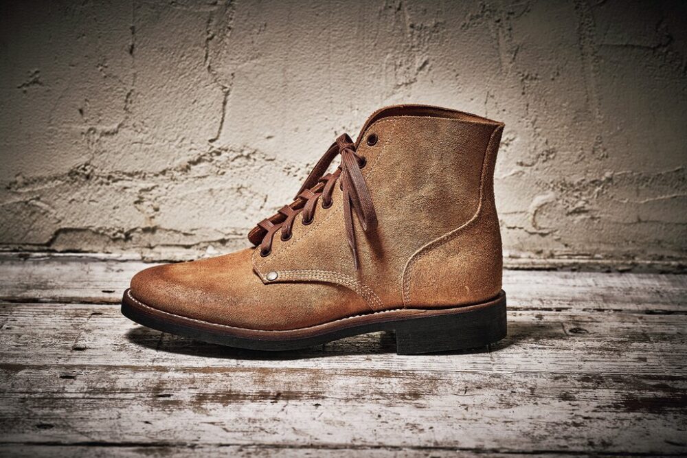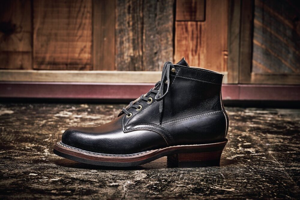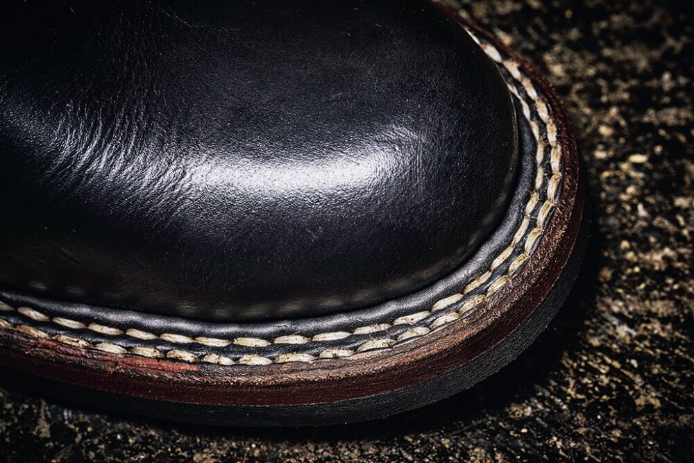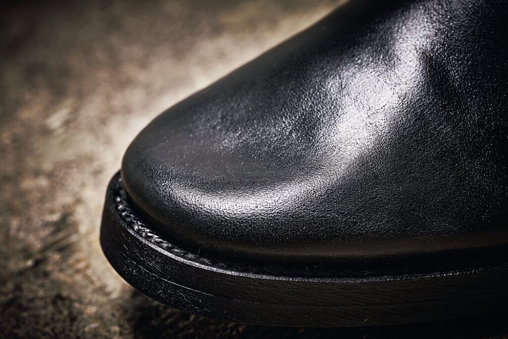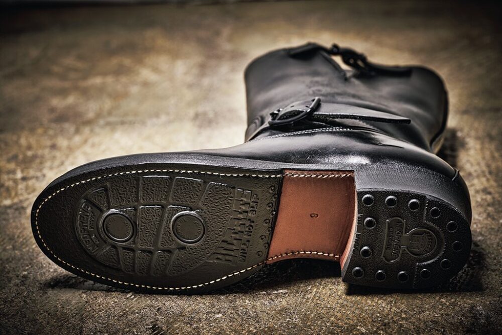 1910年前後のアメリカ、フランスのブーツに着想を得たハイトゥ、ブルドッグトゥなどと呼ばれるラインが入った特徴のあるつま先と、アッパー上下に別パーツを縫い合わせた腰革デザインが特徴のキャップドトゥの外羽根ブーツ。2種類の製法を組み合わせてウエストを強く絞り、当時のクラシカルで優美なフォルムを再現した。マテリアルには、きめ細かく滑らかながら、自然な肌を残した馬革を採用しているため、柔らかく足馴染みも良いのは言うまでもなく、履くうちにトラ・バラ傷などが浮き出てくることも馬革らしい特徴だ。
