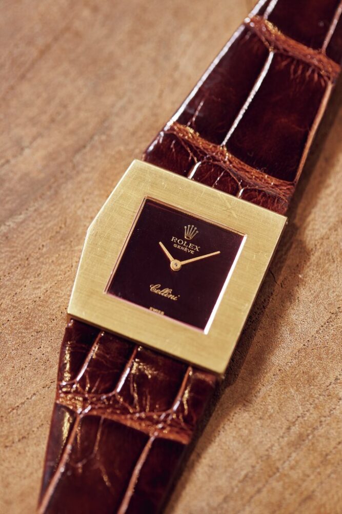 今回ピックアップしたのは、流行の兆しがあるROLEXのドレスラインであるチェリーニコレクション。その中でも異彩を放つのが、このキング・マイダスである。1960年代初頭に鬼才ジェラルド・ジェンタがデザインしたモデル。当初は1000本限定で販売され、独立したモデルあったが、後にチェリーニコレクションに統合され、そのタイミングで文字盤のMIDASがCELLINIに変更されている。ROLEXの代名詞であるオイスターケースやデイトジャスト機構はないが、その分遊び心の効いたデザインとなっており、そのアシメントリーなケースデザインは唯一無二。文字盤のカラーリングも種類がある。