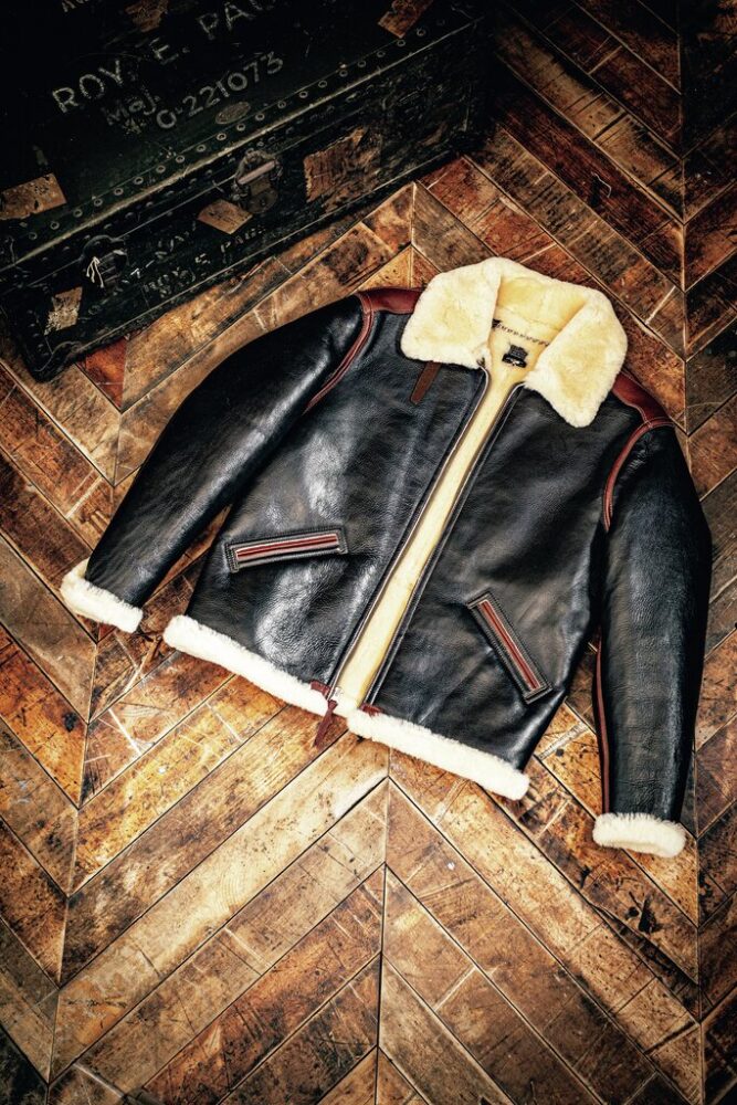 1939年に正式採用された初のインターメディエイトゾーン(中温域用)のジャケットであるタイプB-6。マテリアルには毛足を短く刈り込んだシープスキンを採用する。背面にはアクションプリーツを設けているため、狭い機内での運動性を重視した設計となっている。腰の両脇にはフィット感を調整するためのジッパーがデザインされ、締めると優れたフィット感(機密性)が得られる。