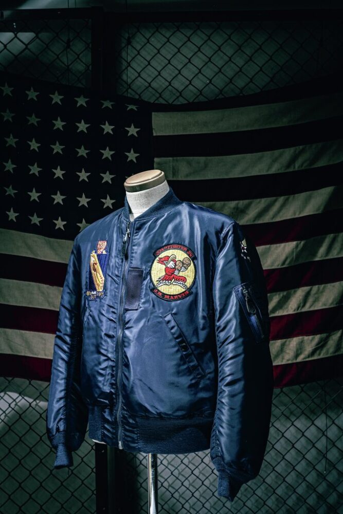こちらのモデルは多数のエースを輩出した朝鮮戦争時代の第334戦闘飛行隊のもの。使用されるスコードロンパッチは当時日本で製作されたローカルメイドパッチで、左胸に第334戦闘飛行隊パッチ、右に第4爆撃戦闘航空団章がデザインされている。BR15570 / ¥107,800_