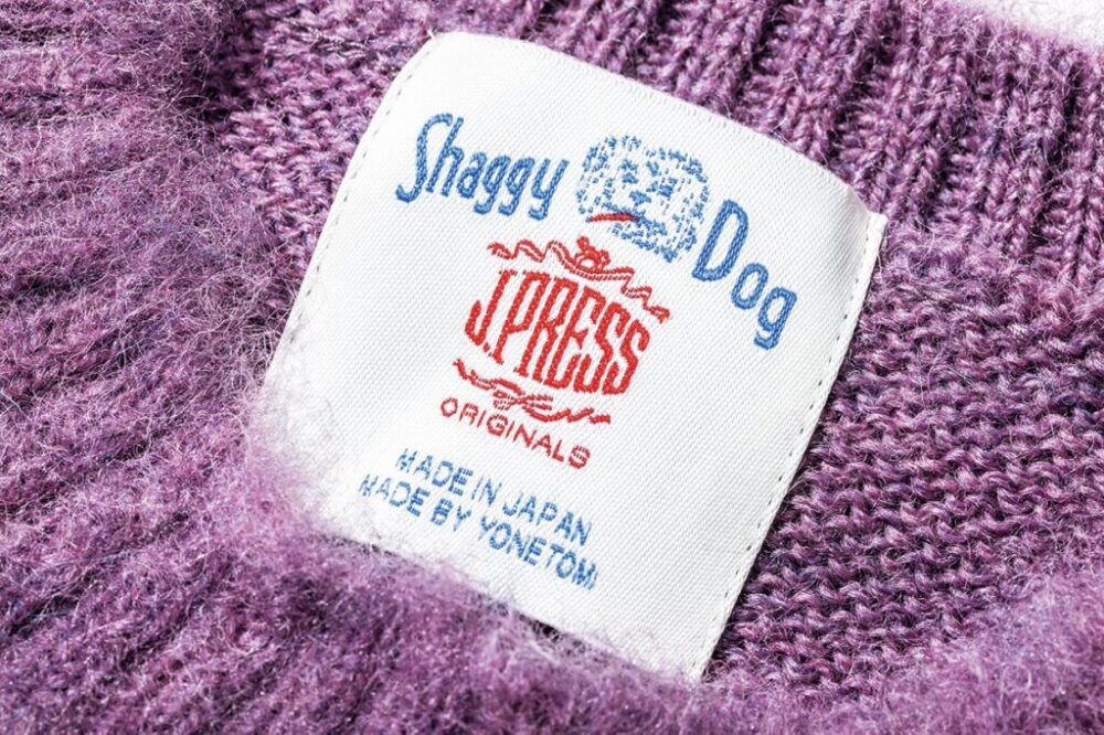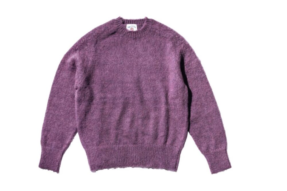 J .PRESSの冬の定番ニットで知られるシャギードッグセーター。生地の表面をアザミの実で毛羽立たせ、フワフワな表情をつけたスコットランドのシェットランドウールニット。