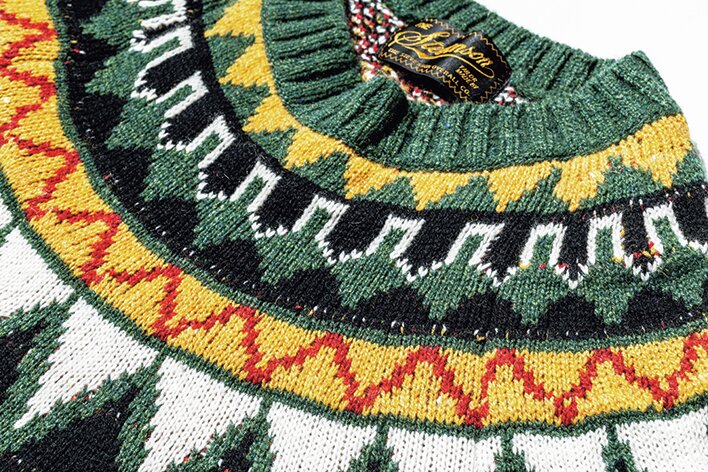 クラシカルなノルディック柄をヴィヴィッドな配色で表現。ざっくりとしたウールの特有の風合いとすっきりとしたフォルムが、スタイリングにひと華添えてくれる1枚になるはず。