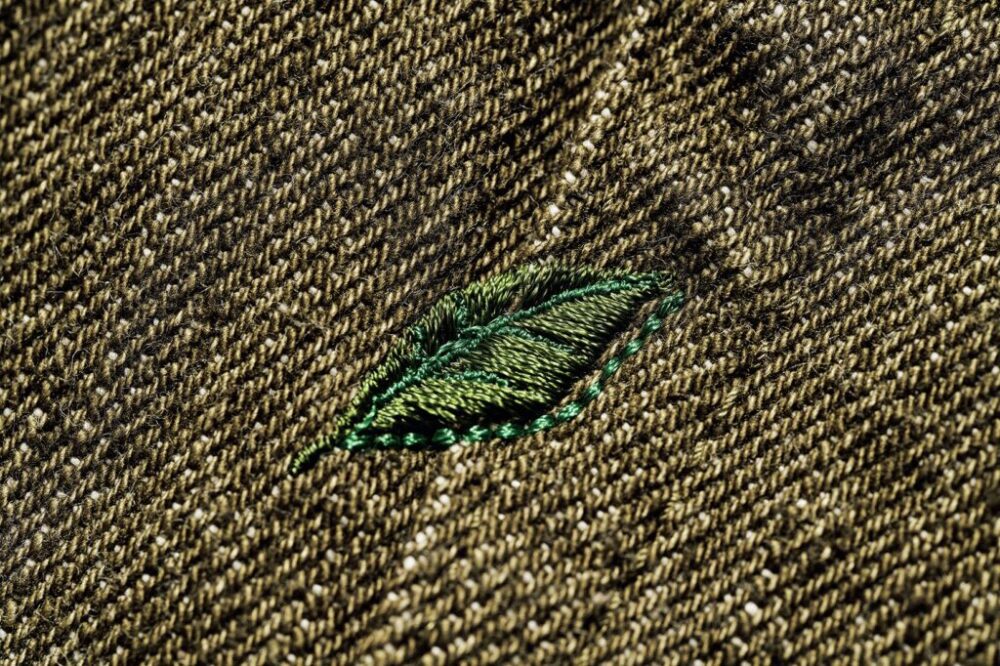 pure blue japanから、オリーブカラーの経糸を持つ14ozのデニムが登場した。オリーブの実を彷彿させるような、トーンの落ち着いた優しいグリーンが特徴的だ。