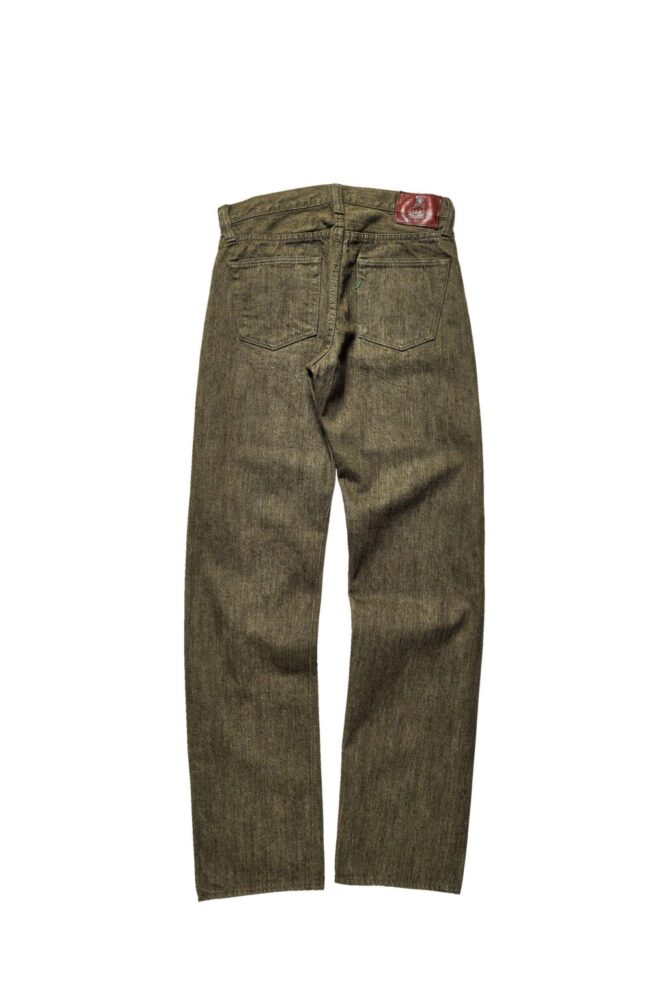 オリーブは硫化染料のロープ染色のため、着用するうちに、独特の経年変化も楽しめる。オリーブ色の経糸以外は、pure blue japanのXX14ozデニムと同様なので、14ozで穿き心地は極上だが、ザラ感のある生地で、重厚感をしっかり感じられるのも嬉しいポイントだ。
