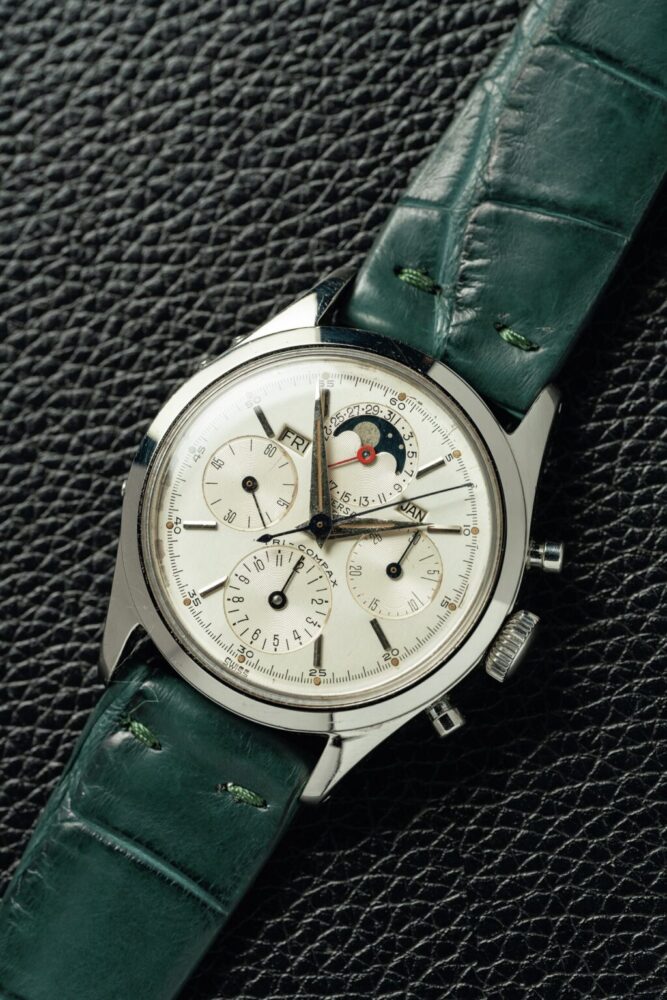 特に防水ケースを用いた最初期のトリコンパックスは、数も少なく、この年代のみの意匠が随所に落とし込まれているため、高騰が予想されているのだ。