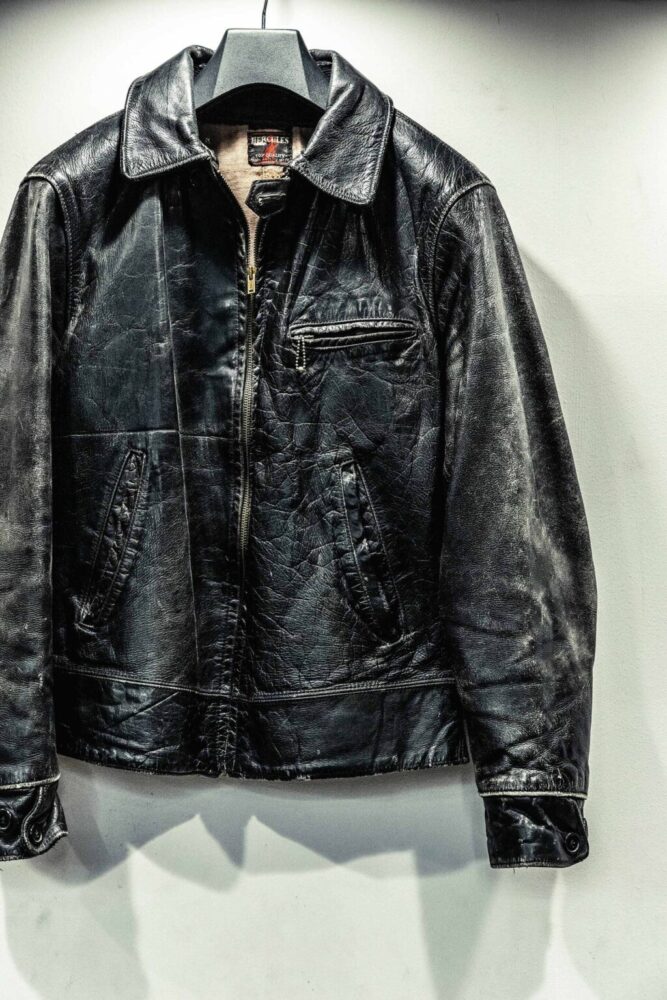 ホースハイドを使用した1930年代のHERCULES製スポーツジャケット。左胸に装備されたボールチェーン付きのファスナーポケットがヴィンテージを象徴する。¥594,000_