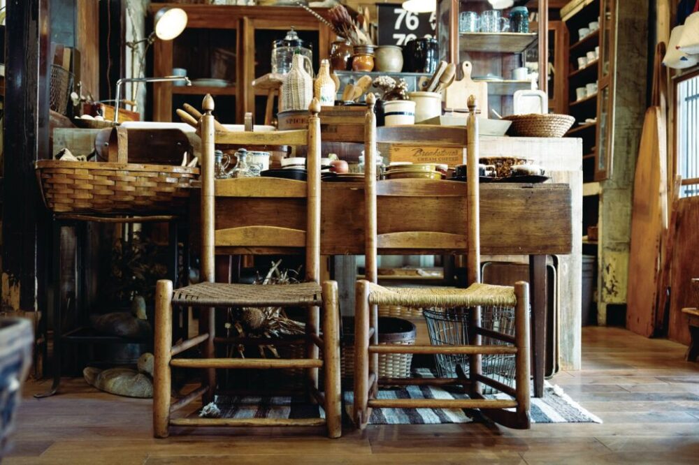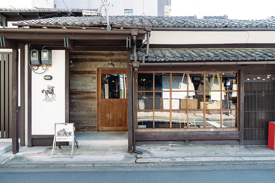 国の重要文化財に指定される建物がいまも多く残され、旧い街並みが見られる京都。連日多くの観光客が訪れる街だが、中心部からやや離れた場所にARCADIA KYOTOはある。旧い長屋を極力活かした店内は、アメリカを中心に買い付けたアンティーク家具や小物がセンスよく並べられる。長く大切に扱われてきたそれらの道具と同じく取り扱うウエアも普遍的なものばかりを揃えているのはショップの強いコンセプトを感じさせてくれる。