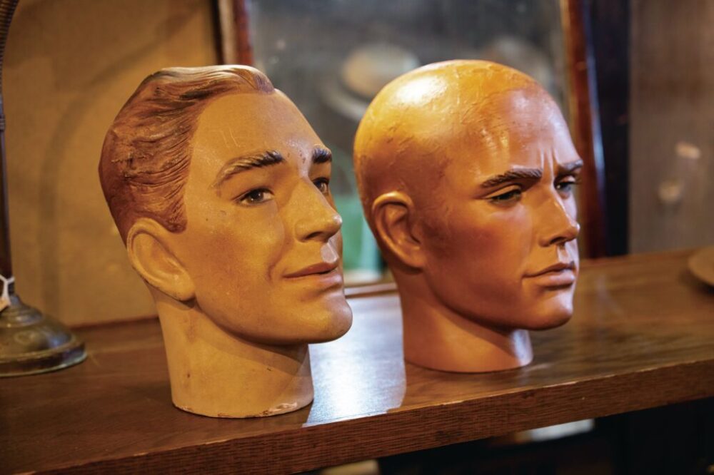 1960年代前後のマネキンヘッド。トルソーに装着できるものもあれば頭だけのものも。またメガネを掛けられるような立体的な耳のデザインなど、個体差や表情に面白みがある。¥88,000_/¥99,000_