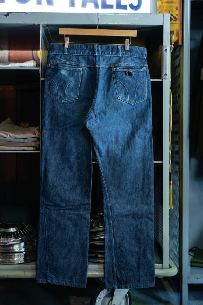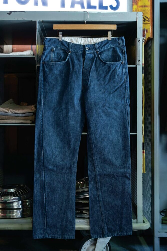 ワークウエアブランドで知られるDickiesの大戦モデル。現存数が非常に少ない貴重なモデルで、インディゴも色濃く残るコンディション良好の5ポケットジーンズ。フロント開閉に使われるドーナツボタンも1940年代によく使われる1本爪タイプで、当然セルビッチデニムを採用している。¥199,990_