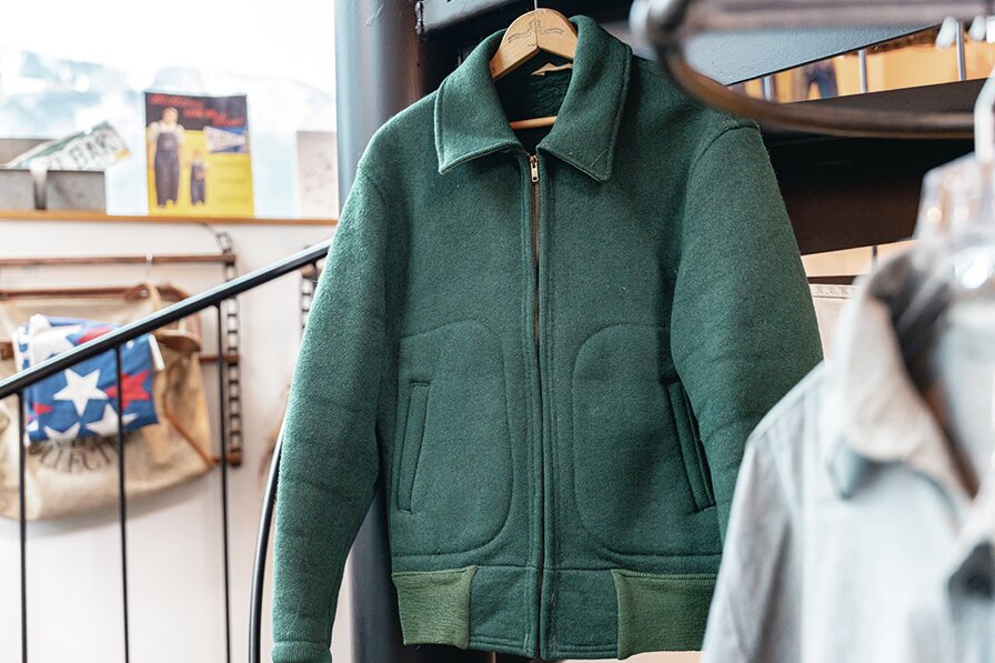 実名復刻もしているBROWN’S BEACHのレアカラーであるグリーンのジャケットは、’50年代から’60年代の頃のもの。ベーシックなジップアップタイプだけに、グリーンカラーが映える。