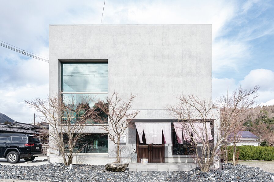 パワースポットである彌彦神社の大鳥居をくぐり、数分ほど車で走ると、ひときわ目立つ無機質な建物が登場する。2階にはリペアショップがあり、購入したヴィンテージを修理することができるのも丁寧だ。