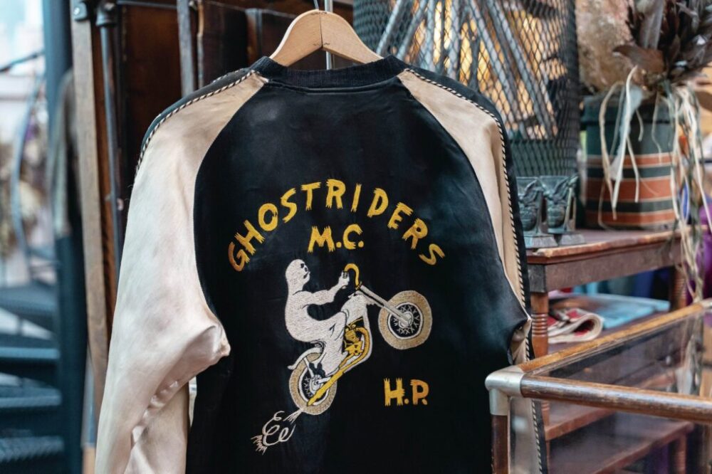 GHOST RAIDERSというMCチームの刺繍が入ったスーベニアジャケットはスペシャルな存在。ブラックベースであることも素晴らしい。¥4,950,000_