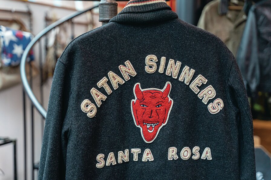人気の高いデビルモチーフの刺繍が入った1950年代のカークラブジャケット。ベースはウールメルトンのショールカラーとなる。¥1,650,000_