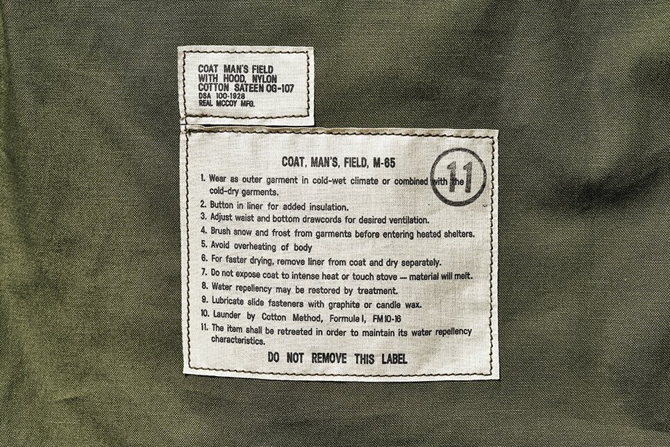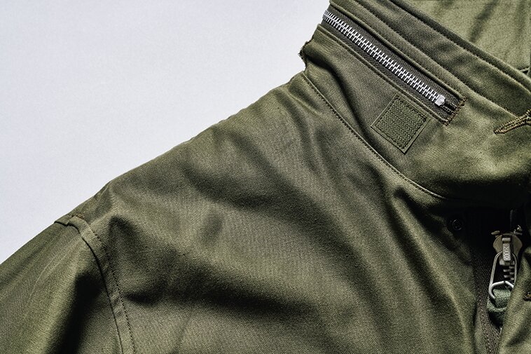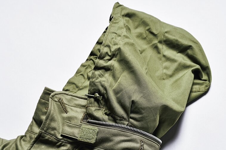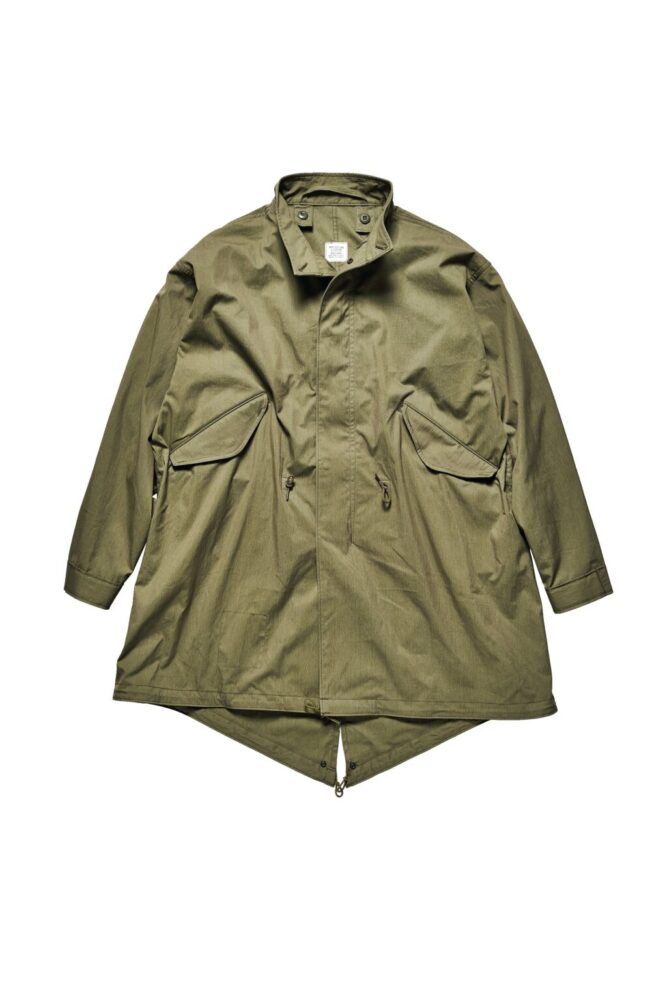 モッズコートの愛称でも知られるM-51の後継である極寒地向けのフィールドパーカ。前作との違いは、ファーを用いたパーカが一体型から取り外し可能となり、エポレットも省略された。近年は、そのスタイリッシュさや汎用性からM-51を超える人気を得ている。初期型の特徴である胸にネームテープの付かない仕様で、コットンナイロン生地を再現。Size:S,M,L,XL Color:OLIVE Price:¥82,500_