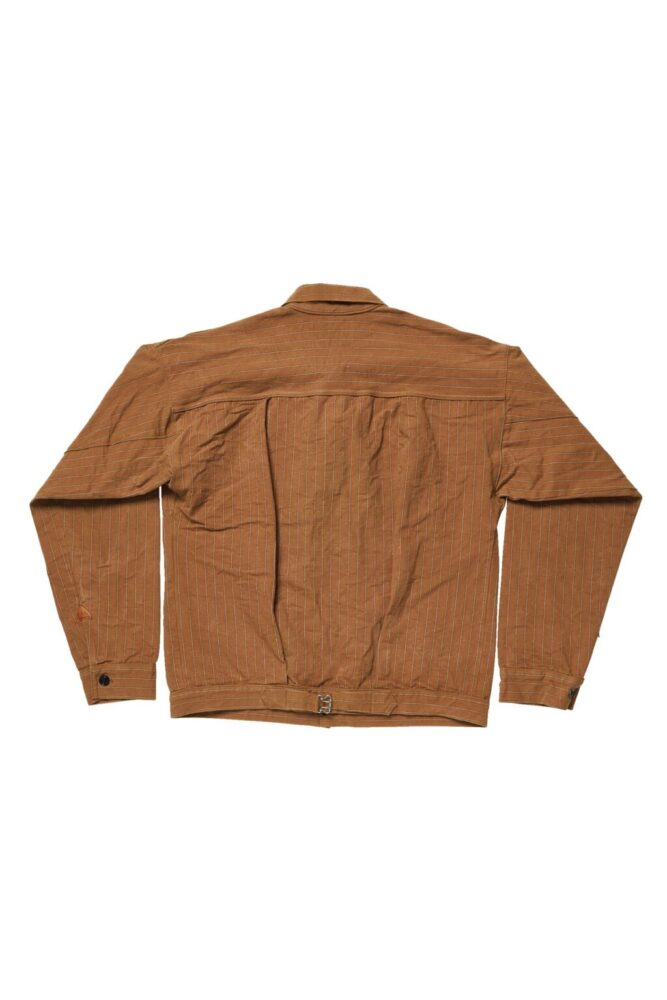 直線で縫製された肩のラインは袖山が「ゼロ」の状態で、その分着用することで自然に肩が落ち、脇の下に生地が蛇腹のようにたまり、それが特徴的な色落ちになる、この時代ならではのブラウス。左右対称に配されたポケットもこの時代のワークウエアでは珍しい。独特のドレープ感も魅力の1着だ。¥42,900_