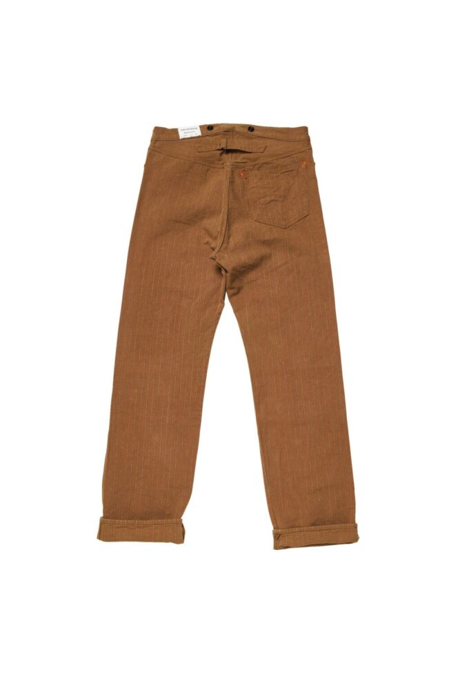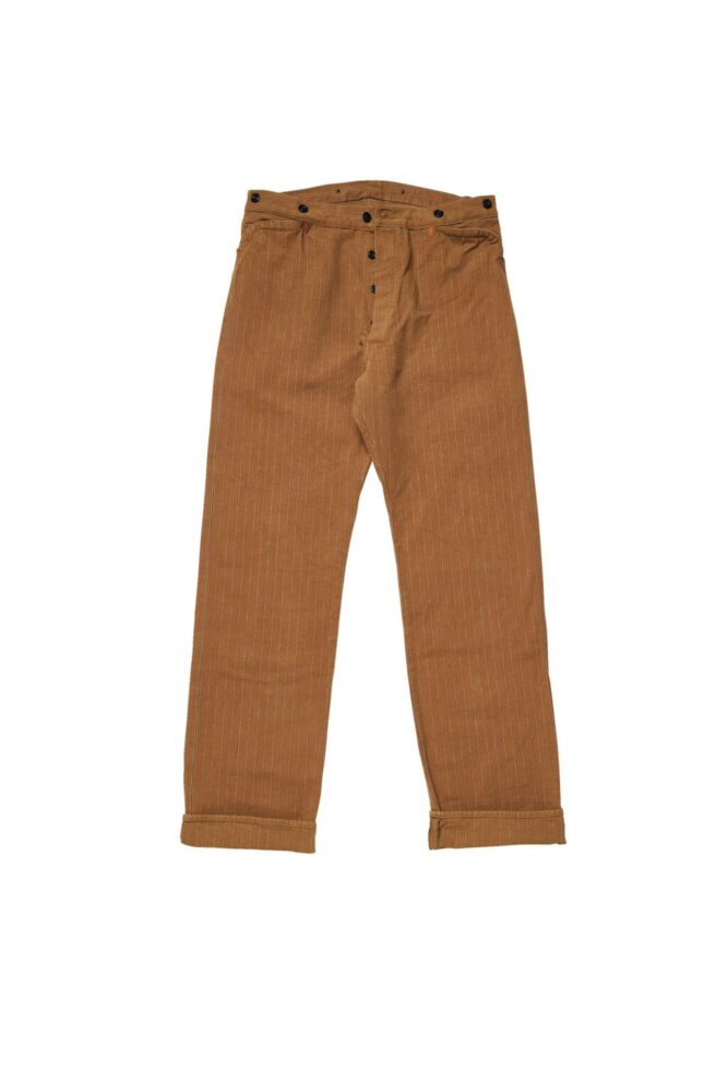 グリーンバウムブラザーズの製作したこの『First Pair of Pants』も、同じように紳士服の子供サイズである。東海岸で生地調達と縫製をし、西海岸で販売をしていた同社ならではのオリジナルティのあるダックストライプ生地を使ったワークパンツは、大人用さながらの佇まいだ。
