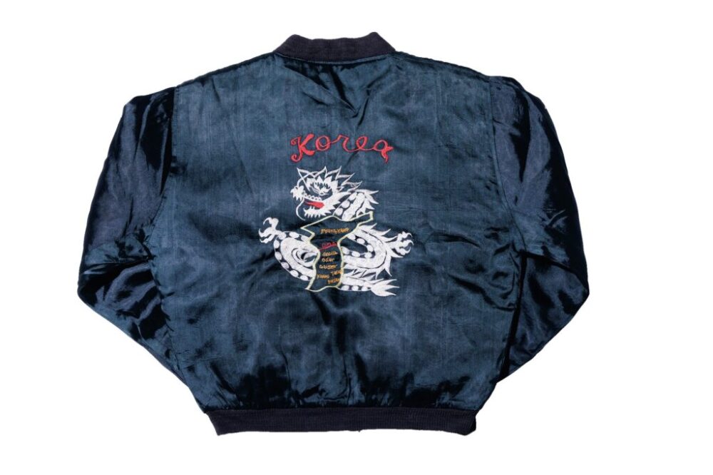 スーベニアジャケット、つまりスカジャンは日本が生み出した最初の洋服だ。進駐軍の軍人たちによって、世界各地にこのスタイルのスーベニアは広まっていった。背中だけではなく、胸、袖にも龍の刺繍が入った韓国スーベニア。